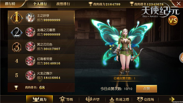 - 个人排行包括:战力、等级、声望、传说之塔、竞技场、勇者守护、巅峰对决;