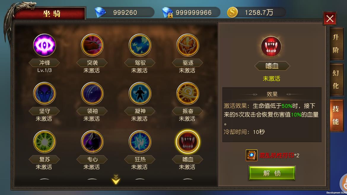 领袖:坐骑能力获得中等幅度提升,学习后可以额外获得坐骑已有的攻防血属性加成;